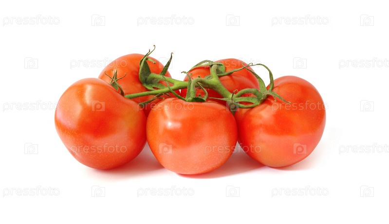 Свежие помидоры на веточке на белом фоне