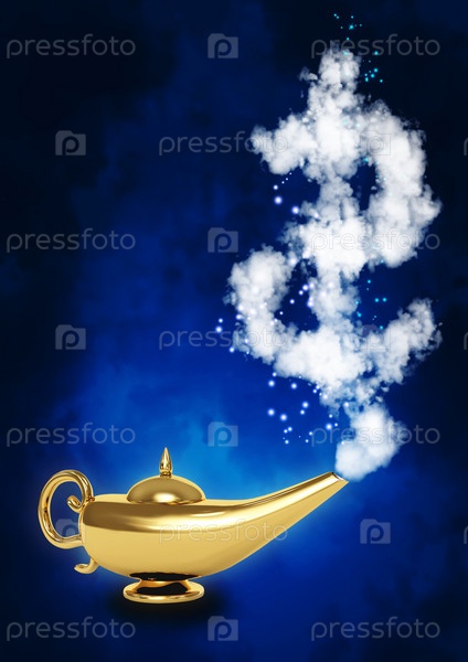 Волшебная лампа и символ доллара