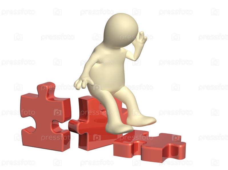 Расстроенный человечек с пазлами