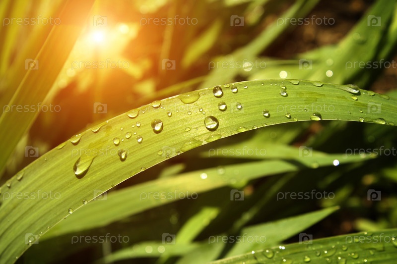 Капли дождя на траве