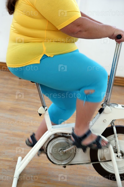 Полная женщина на велотренажере