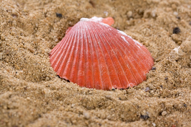 Оранжевая раковина на песке