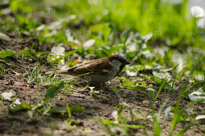 Воробей на траве