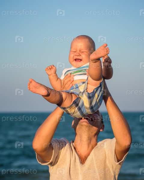 Отец с ребенком отдыхают на пляже