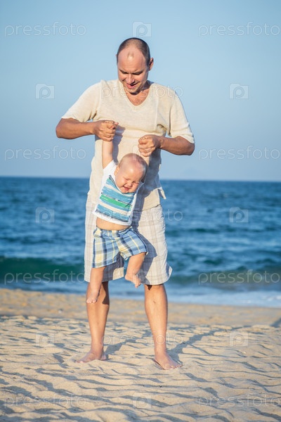 Отец с ребенком отдыхают на пляже