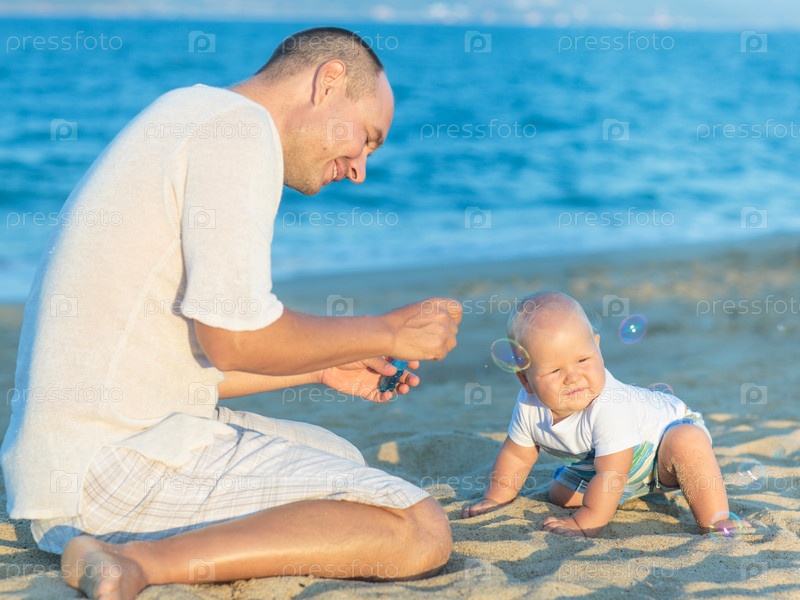 Отец с ребенком отдыхают на пляже