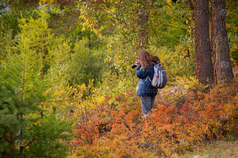 Девушка-фотограф в осеннем пейзаже