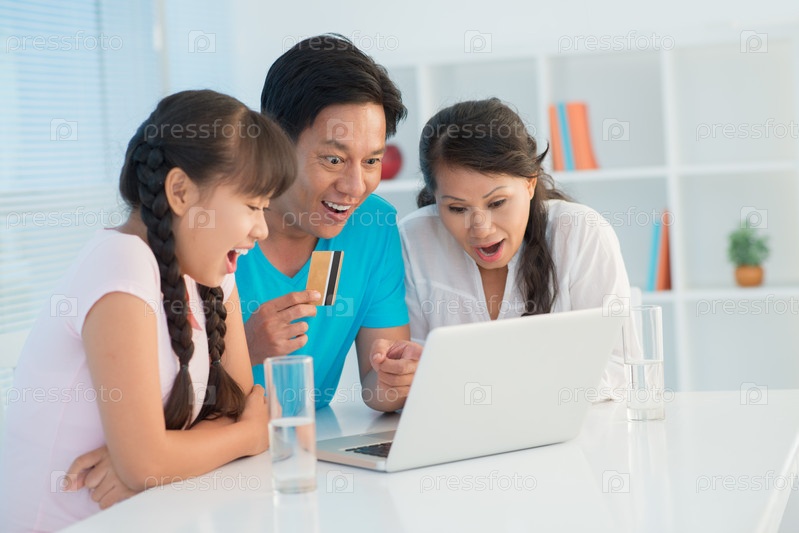 Семья делает интернет-покупки