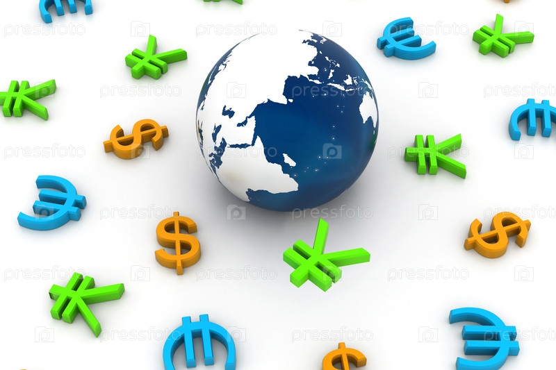 Глобус и символы валют