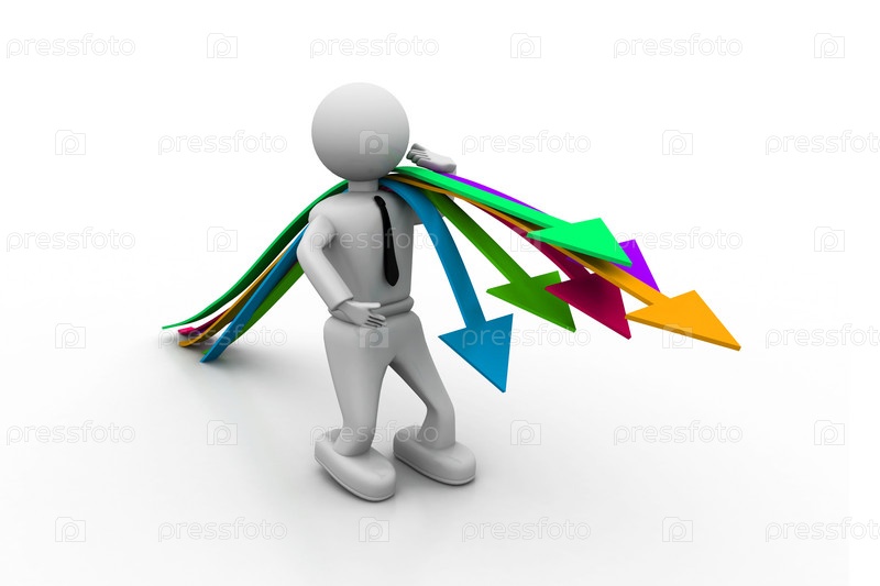 Деловой человек несет стрелки