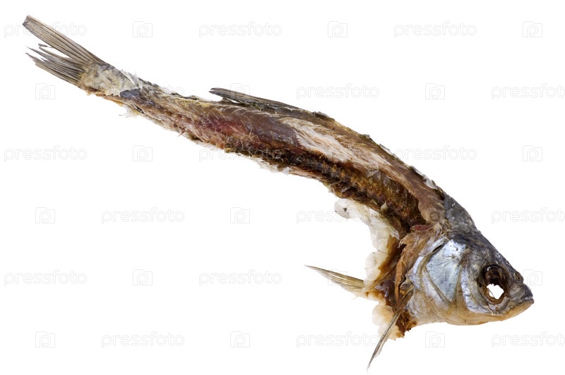 Сушеная рыба крупным планом, белый фон