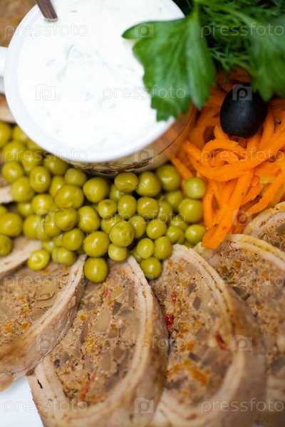 Мясной рулет с овощами и зеленью