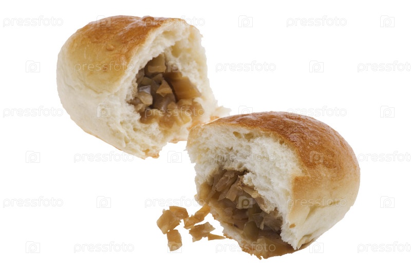 Пирожок с капустой, белый фон