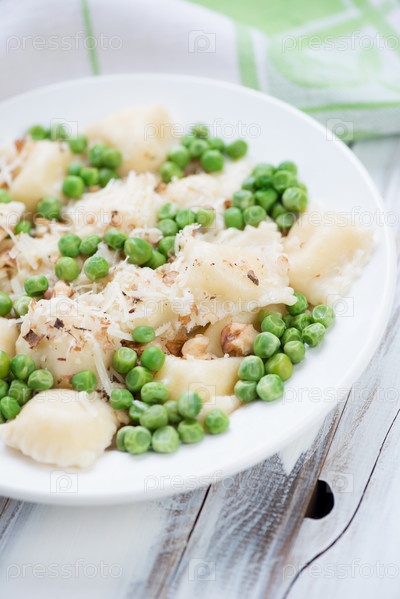 Равиоли с зеленым горошком, грецкими орехами и сыром пармезан