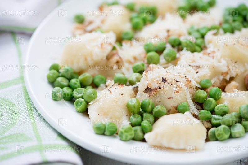Равиоли с зеленым горошком, грецкими орехами и сыром пармезан
