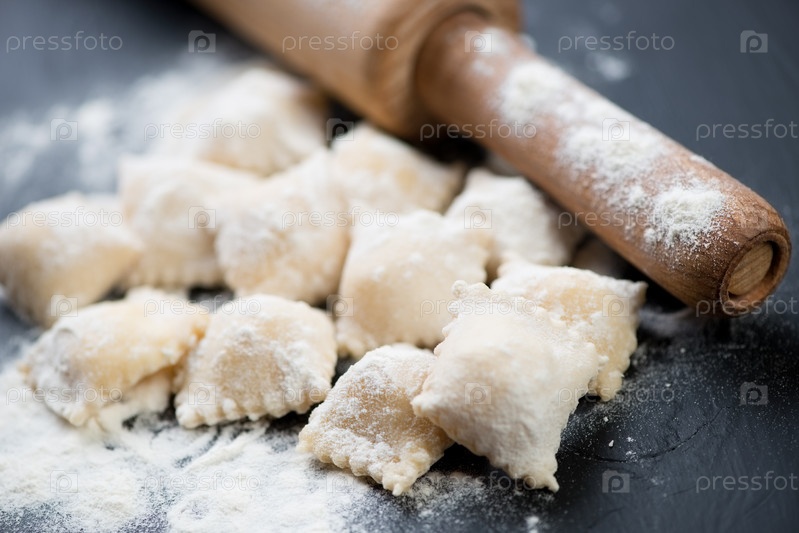 Сырые равиоли на столе