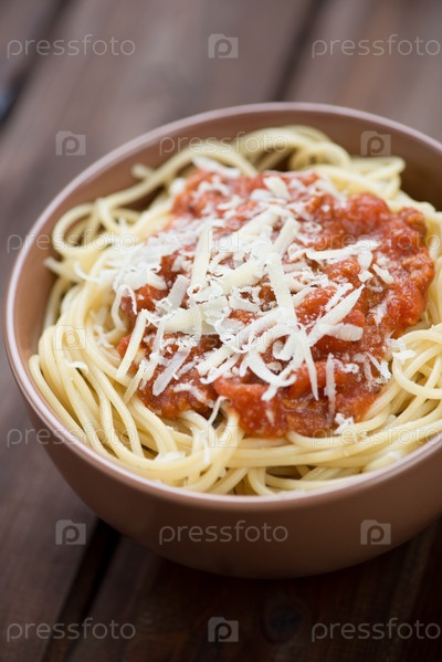Спагетти с соусом болоньезе и сыром пармезан