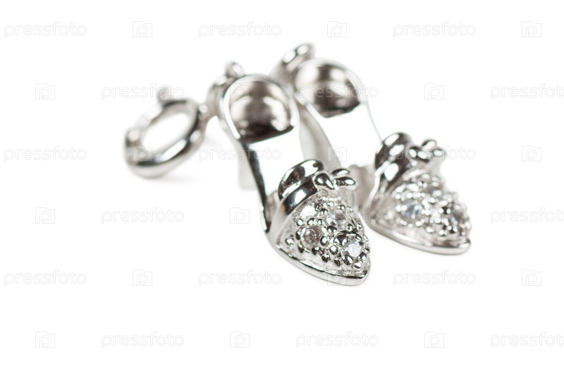 Серебряные серьги в виде туфелек на белом фоне