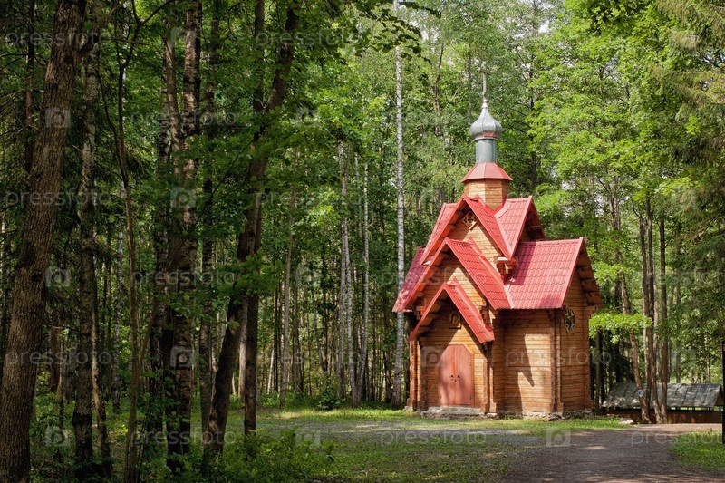 Деревянная часовня в лесу