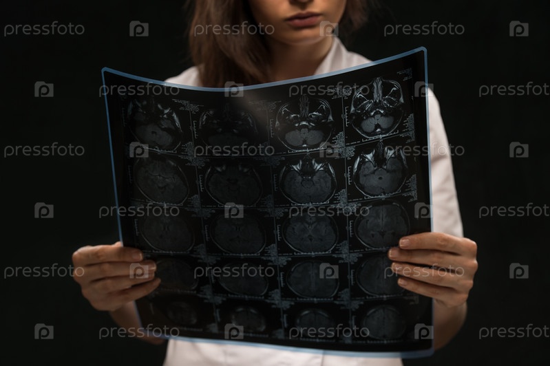 Доктор смотрит рентген головного мозга