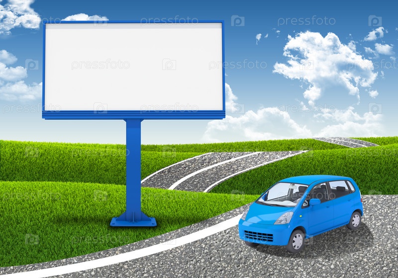 Маленький автомобиль и пустой рекламный щит