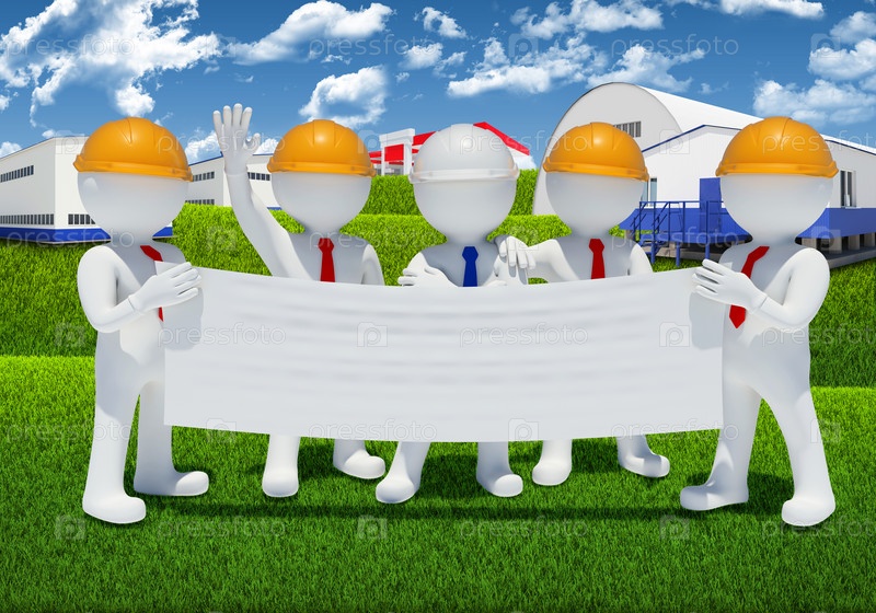 Строители с пустым плакатом