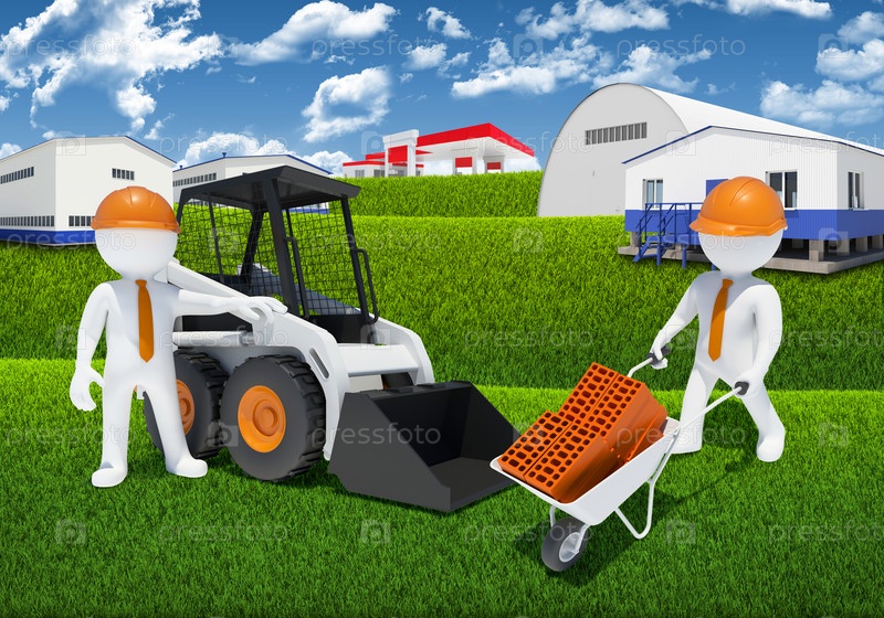 Два рабочих с погрузчиком и тачкой