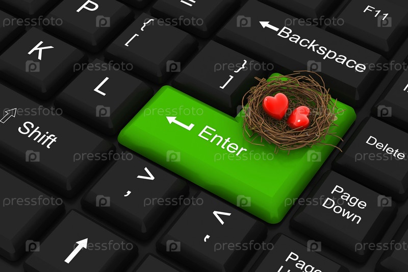 Сердца в гнезде на кнопке Enter