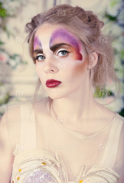 Модель с макияжем в форме бабочки