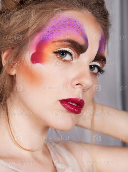 Модель с макияжем в форме бабочки
