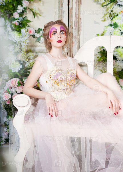 Модель с макияжем в форме бабочки