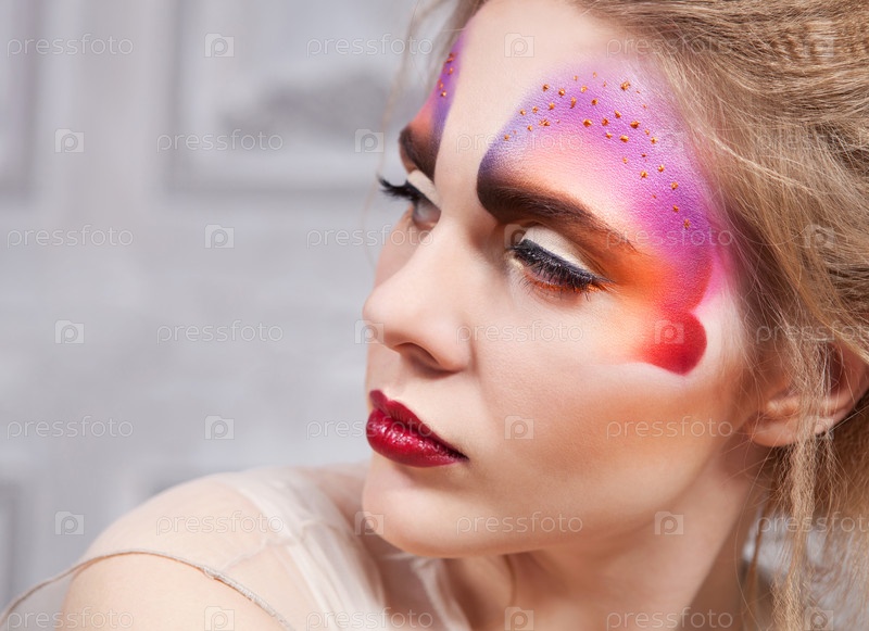 Модель с макияжем в форме бабочки