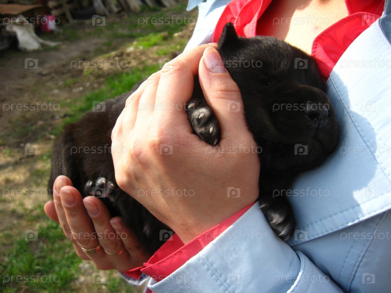 Черный щенок в руках