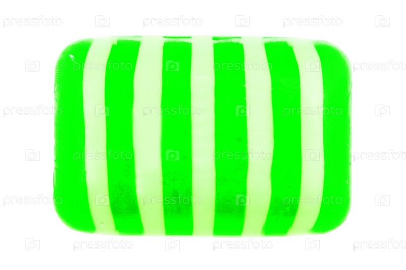 Полосатое туалетное мыло на белом фоне