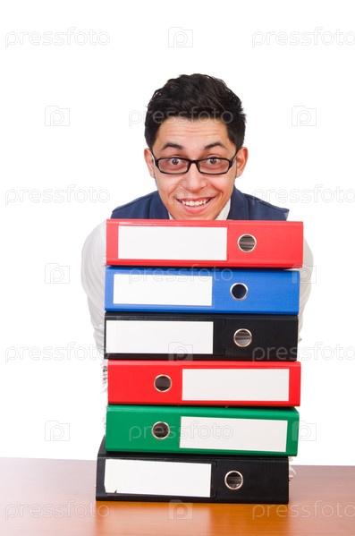 Забавный мужчина с кучей документов