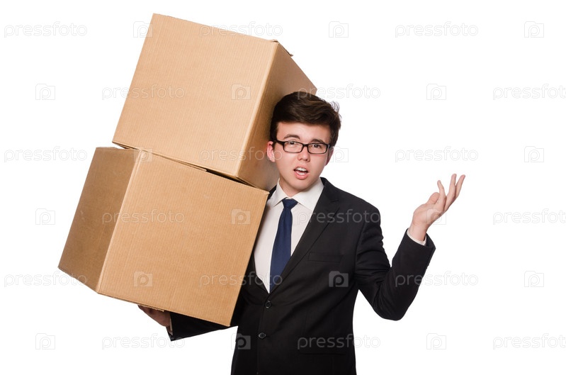 Забавный мужчина с большой коробкой