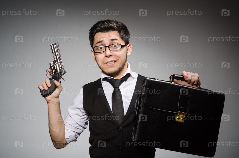 Мужчина с пистолетом и портфелем