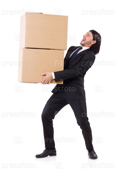 Забавный человек с коробками