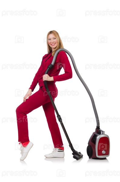 Молодая женщина с пылесосом