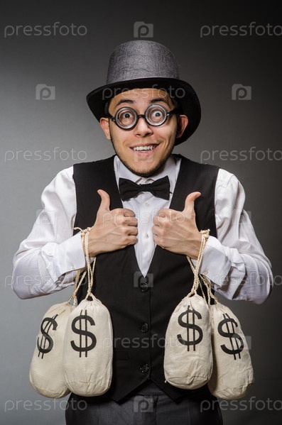 Мужчина с мешками денег