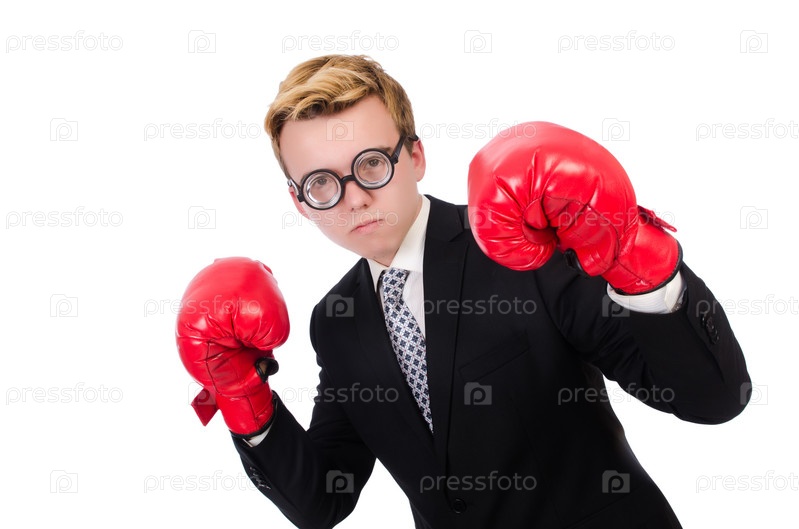Молодой бизнесмен в боксерских перчатках
