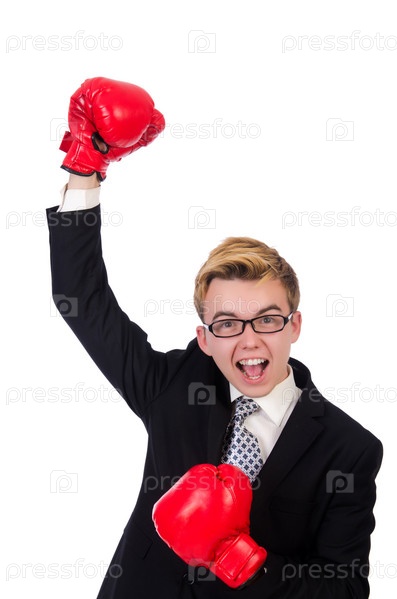 Молодой бизнесмен в боксерских перчатках