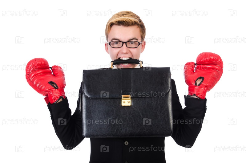 Молодой бизнесмен в боксерских перчатках