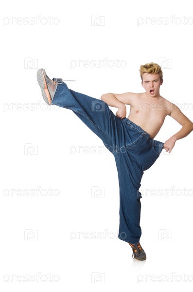 Забавный мужчина в огромных брюках