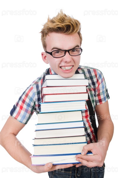 Смешной студент с книгами