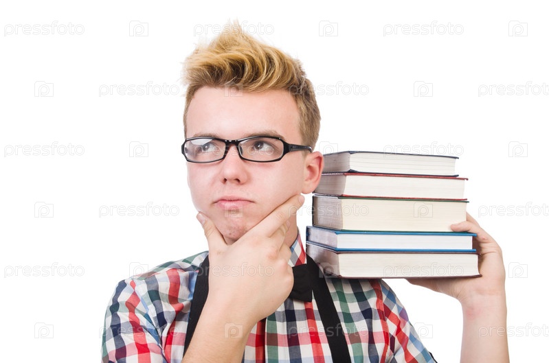 Смешной студент с книгами