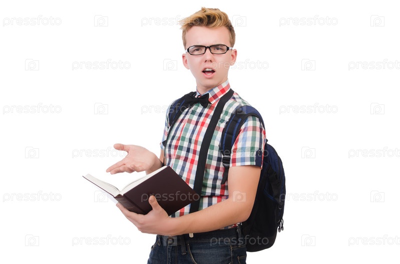Смешной студент с книгами