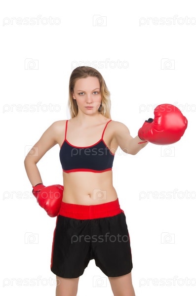 Женщина боксер на белом фоне