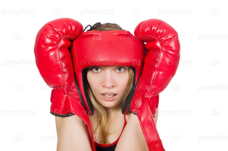 Женщина боксер на белом фоне