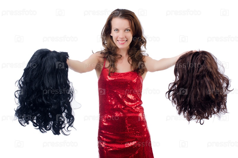 Женщина выбирает парик